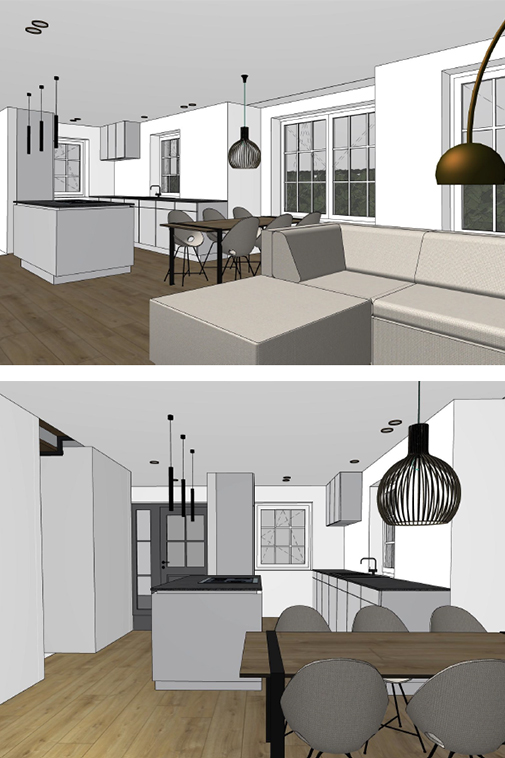 Ob Sie bereits vorhandene Möbel integrieren wollen oder sich neue anschaffen möchten, unsere Innenarchitektinnen mit langjähriger Erfahrung in der Planung von Einfamilienhäusern entwerfen Ihnen konkrete Grundrisse und Ansichten. Anhand von schematischen 3D Visualisierungen erhalten Sie ein erstes Raumgefühl für Ihr zukünfiges Zuhause.