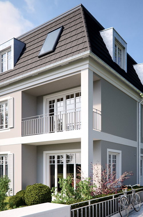 Mit viel Herzblut und Liebe zum Detail wurde das Neubauvorhaben – in Zusammenarbeit mit einem renommierten Münchner Architekturbüro – entworfen und geplant. Die unverwechselbare, zeitlos schöne Fassade spricht für sich. Auch die formvollendete Zaunanlage auf einem Betonsockel, die einladenden Haustüren und viele weitere, geschmackvolle Details tragen zum stimmigen Gesamtambiente des Ensembles bei. Durch eine perfekte Grundrissplanung mit lichtdurchfluteten Räumen, einem separaten Ankleidezimmer oder dem optionalen Kaminanschluss wird jedes Stadthaus selbst überdurchschnittlichen Ansprüchen gerecht.