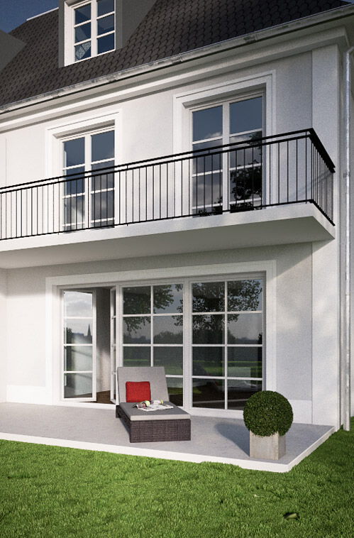 Auch die lichtdurchfluteten Räume, die fließenden Raumübergänge, die repräsentativen, hohen Türen mit hochwertigen Edelstahlgriffen oder die Vorbereitung für einen offenen Kamin zur Schaffung behaglicher Ruhezonen zeigen den ganzheitlichen Ansatz unserer Planung. Die vorgesehenen Ankleidezimmer und optionalen Einbauschränke sorgen zudem für genügend Stauraum auf allen Ebenen. Selbstverständlich werden die Doppelhaushälften ganz nach den Wünschen der zukünftigen Eigentümer ausgestattet. Viele Details stehen zur Auswahl.