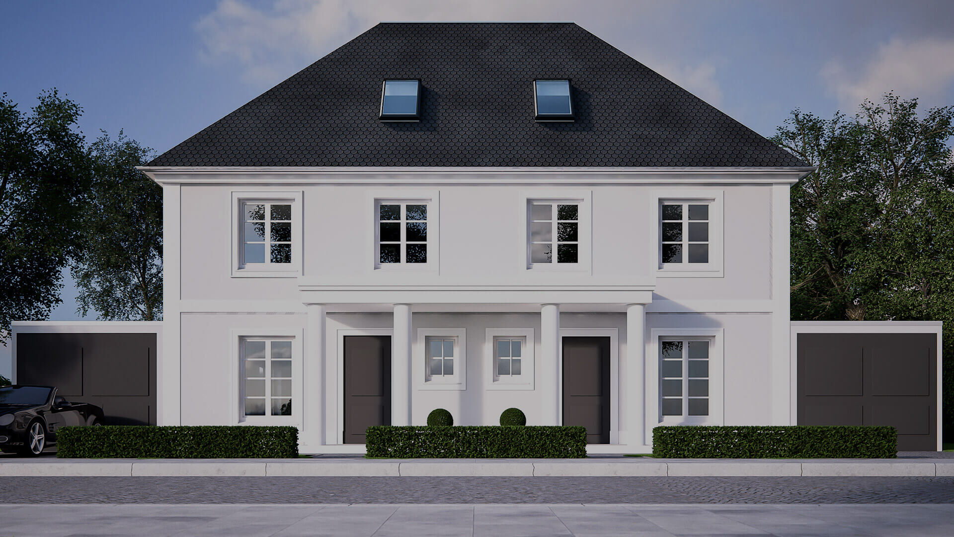 Inmitten von Kaffemühlenhäusern und idyllischen Gärten entsteht ein Doppelhaus zum Wohlfühlen.