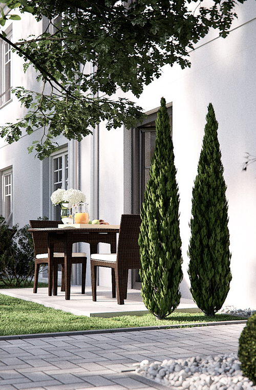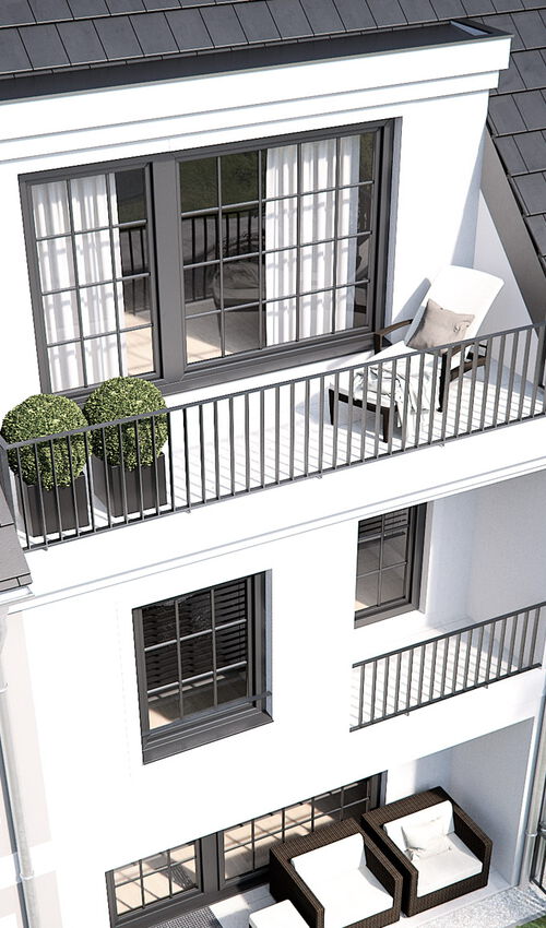 Mit viel Herzblut und Liebe zum Detail wurde das Neubauvorhaben - in Zusammenarbeit mit einem renommierten Münchner Architekturbüro - entworfen und geplant. Schon die unverwechselbare, zeitlos schöne Fassade der Häuser spricht für sich. Auch die einladenden Haustüren, die herrlichen Terrassen und Balkone, die großen Dachgauben und viele weitere, geschmackvolle Details tragen zum stimmigen Gesamtambiente des Ensembles bei. Durch eine perfekte Grundrissplanung mit lichtdurchfluteten Räumen, große Fenster mit niedrigen Brüstungshöhen oder den optionalen Kaminanschluss wird jedes Stadthaus selbst überdurchschnittlichen Ansprüchen gerecht.