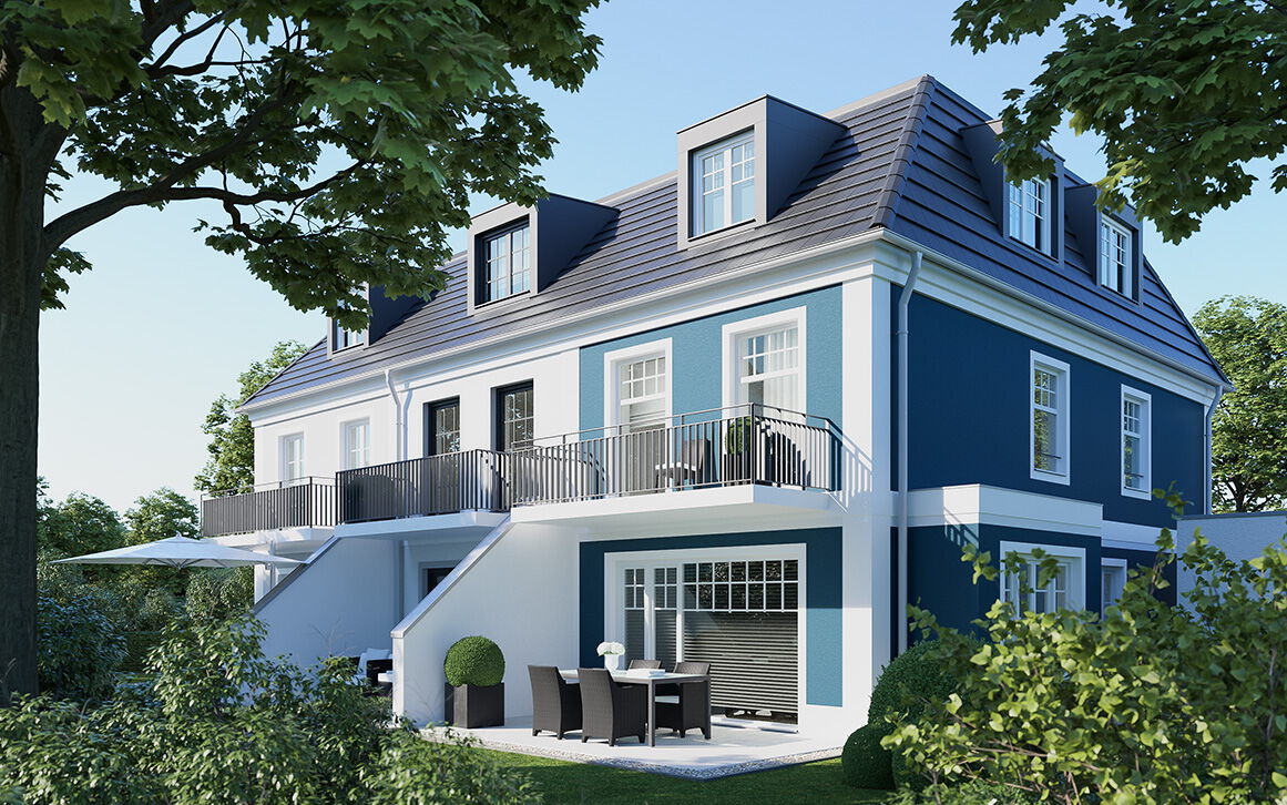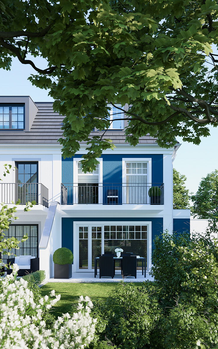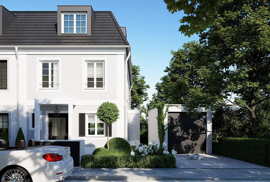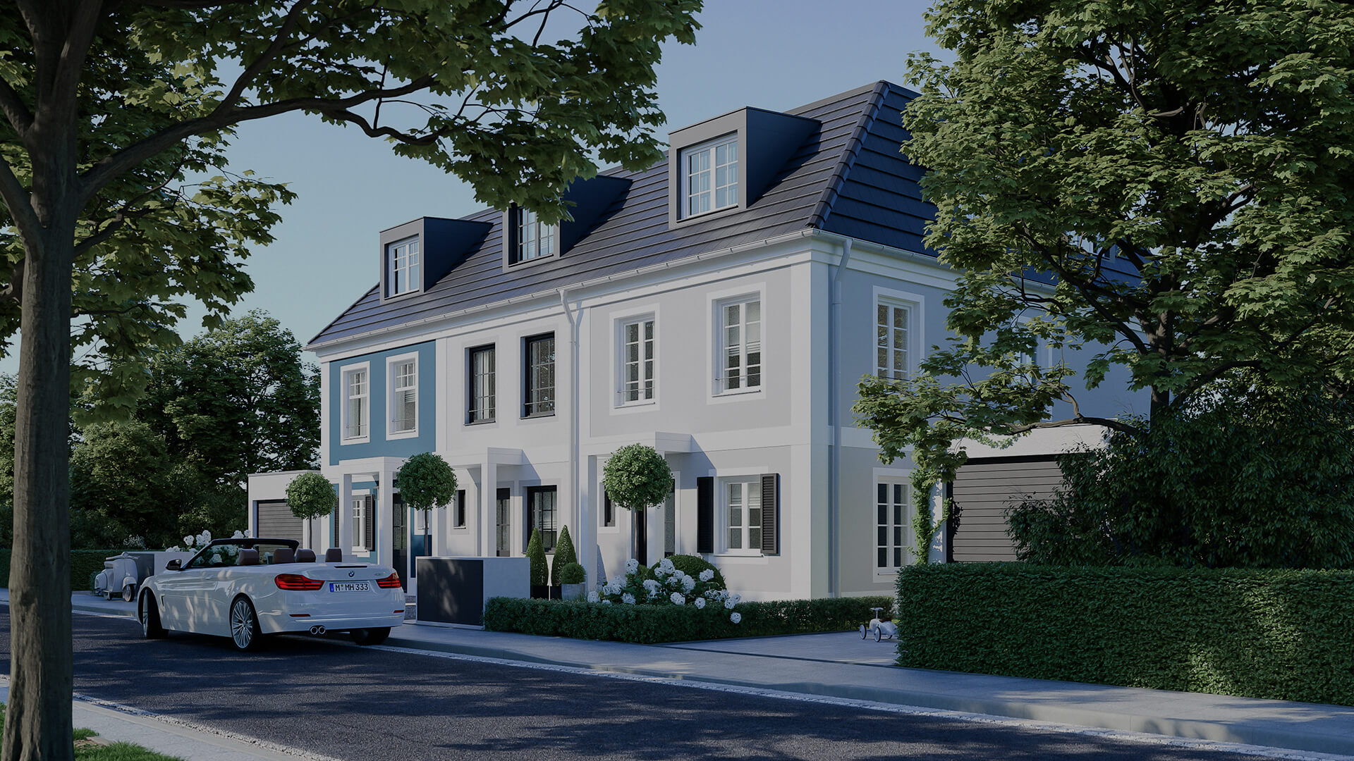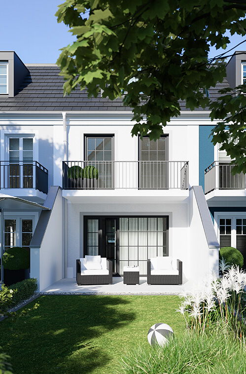 In einer der begehrtesten Lagen des Münchner Stadtbezirks Berg am Laim, in der von Alleebäumen und idyllischen Gärten geprägten Sonnwendjochstraße, entstehen drei zauberhafte Stadthäuser zum Wohlfühlen.