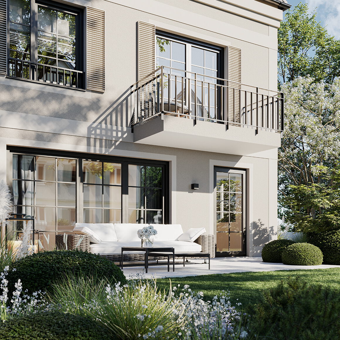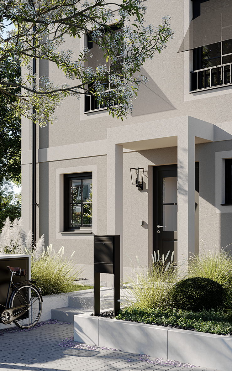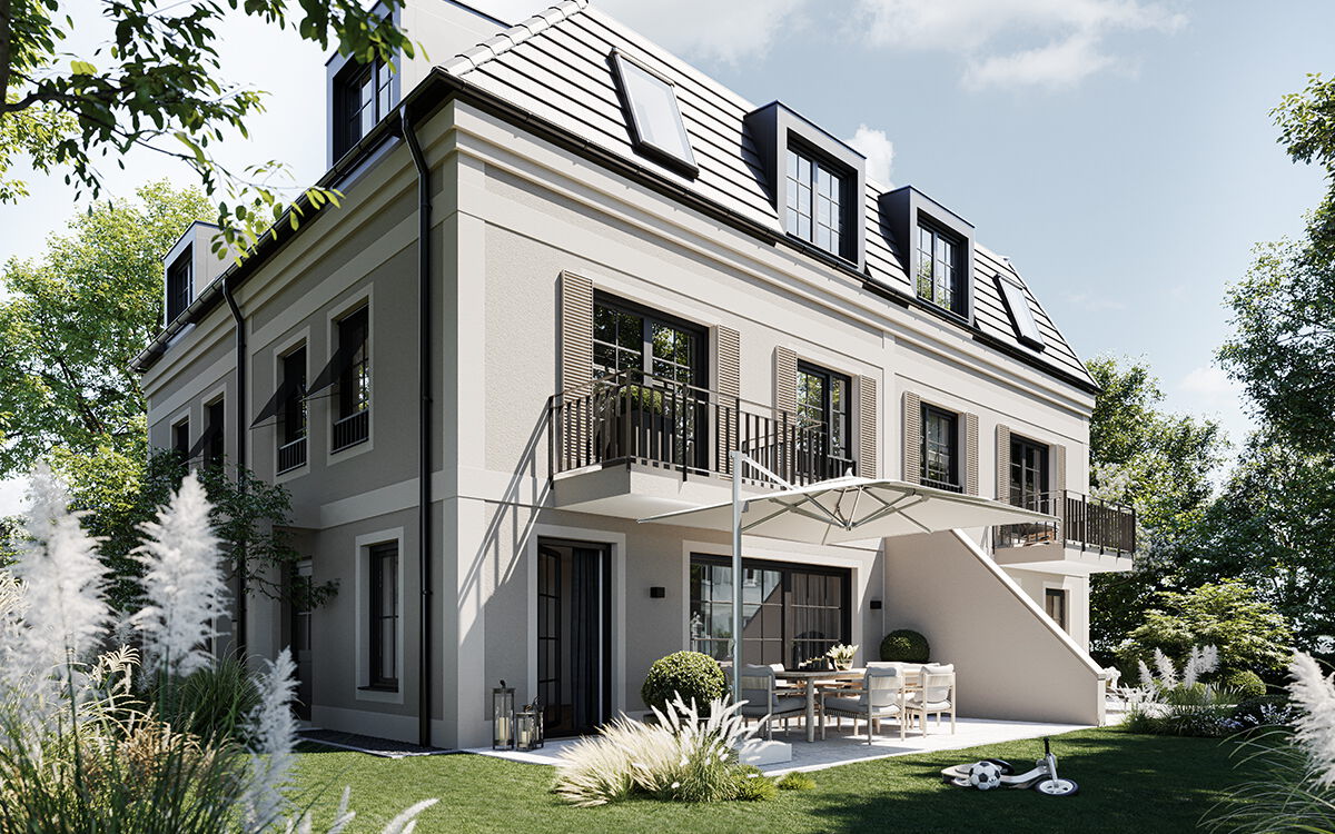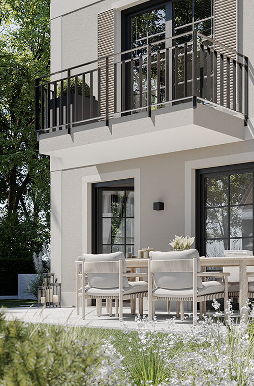 Mit viel Herzblut und Liebe zum Detail wurde das Neubauvorhaben - in Zusammenarbeit mit einem renommierten Münchner Architekturbüro - entworfen und geplant. Schon die unverwechselbare, zeitlos schöne Fassade der Häuser spricht für sich. Auch die einladenden Haustüren, die herrlichen Terrassen und Balkone, die zahlreichen Dachgauben und viele weitere, geschmackvolle Details tragen zum stimmigen Gesamtambiente des Ensembles bei. Durch eine perfekte Grundrissplanung mit lichtdurchfluteten Räumen, großen Fenstern, niedrigen Brüstungshöhen oder dem optionalen Kaminanschluss wird jedes der Stadthäuser selbst überdurchschnittlichen Ansprüchen gerecht.
