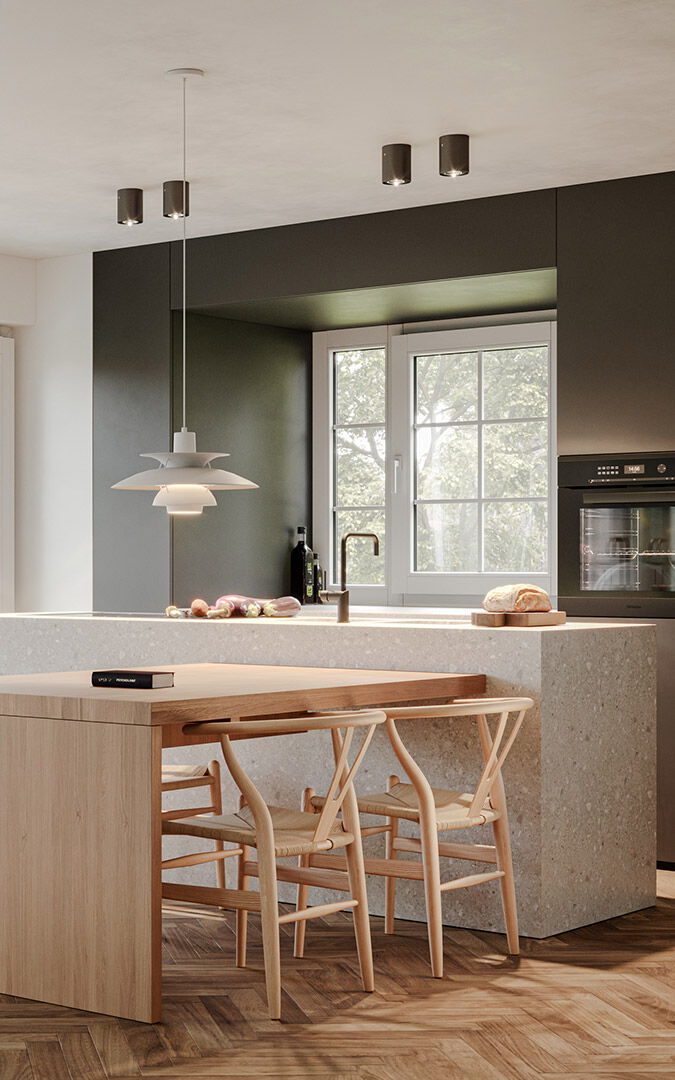 Jedes der Häuser verfügt über einen schön aufgeteilten Wohn- und Essbereich mit offener Küche, drei Schlafzimmer, ein Homeoffice, zwei Tageslichtbäder, ein Gäste-WC und weitere Räume im Untergeschoss. Ein zusätzliches Bad oder eine Sauna sind auf Wunsch möglich.
