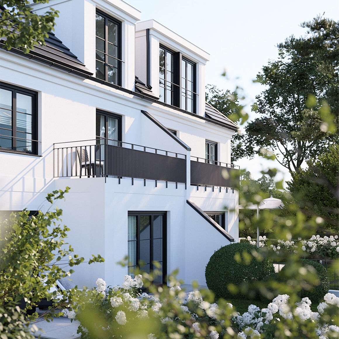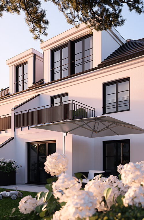 Mit viel Herzblut und Liebe zum Detail wurde das Neubauvorhaben - in Zusammenarbeit mit einem renommierten Münchner Architekturbüro - entworfen und geplant. Schon die unverwechselbare, zeitlos schöne Fassade der Häuser spricht für sich. Auch die großzügigen Zuwegungen, die einladenden Haustüren, die herrlichen Terrassen und Balkone, die großen Dachgauben und viele weitere, geschmackvolle Details tragen zum stimmigen Gesamtambiente des Ensembles bei. Durch eine perfekte Grundrissplanung mit lichtdurchfluteten Räumen, großen, teilweise bodentiefen Fenstern oder den auf Wunsch erhältlichen Kaminanschluss wird jede Doppelhaushälfte selbst überdurchschnittlich hohen Ansprüchen gerecht.